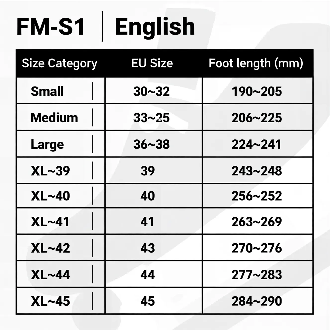 ۲. سایزبندی FM‑S1 چگونه است؟