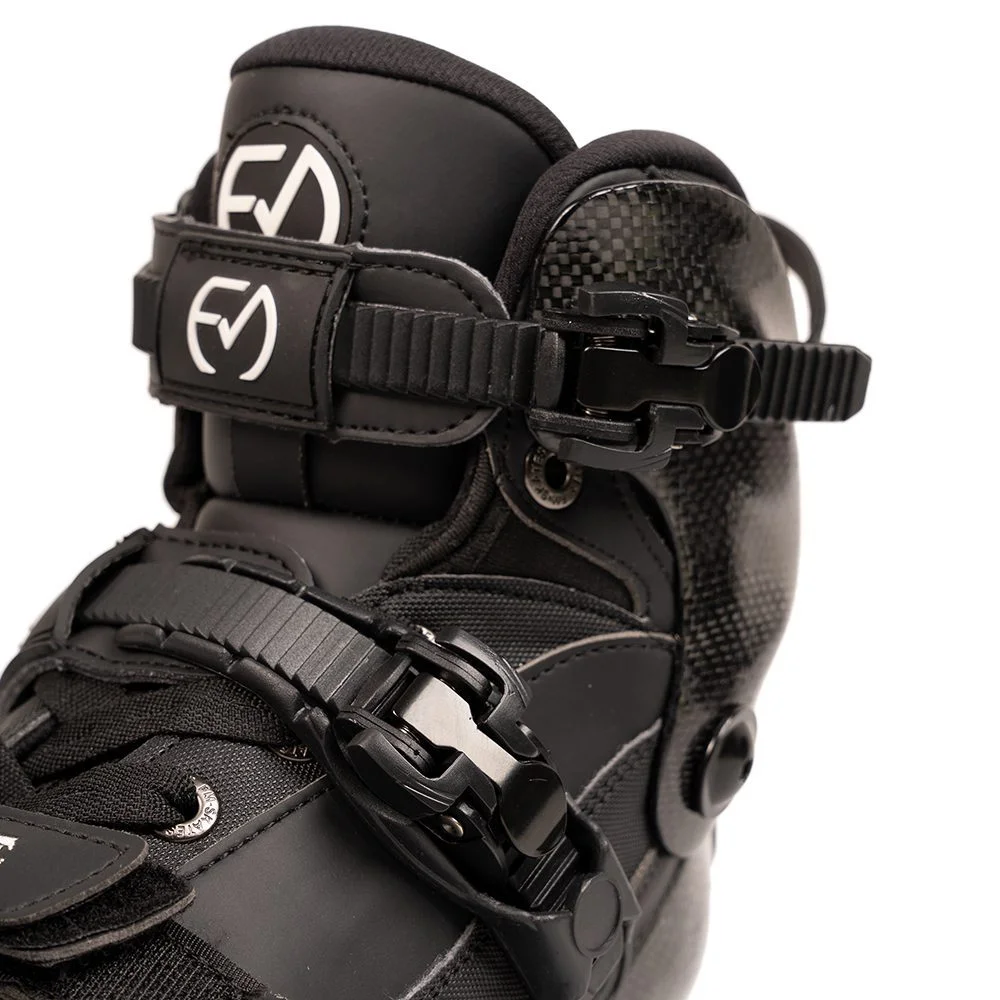 - بوت کربنی باکیفیت: بدنه اصلی اسکیت از ۸۰٪ فیبر کربن ساخته شده است. این میزان بالای کربن باعث میشود بوت به شدت سبک، در عین حال فوقالعاده سفت و مستحکم باشد. این سختی، انتقال کامل انرژی از پا به چرخها را تضمین میکند و دقت شما را در حرکات ریز و پیچیده به حداکثر میرساند. بخش ۲۰٪ چرم در رویه بوت، علاوه بر تهویه مناسب، راحتی بیشتری را فراهم میکند.